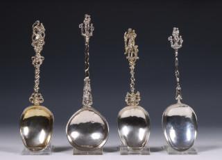 twee bekroond door zeilschip en een door cartouche met putti, een met mt. 'R.F', mogelijk Rudolphus Feenstra, Sneek, 1810-1811, een met mt. 'MB', 2e gehalte, en een gekeurd 'ZII'