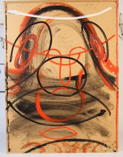 mixed media on paper, signed with initials and dated '986 RL' lower centre, dedicated on the reverse of the frame 'Voor Hannie & Aldo 20.3.88. Luc Lucassen', 29 x 42 cm.