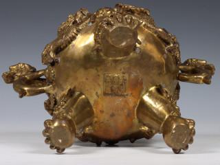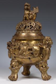 het wierookvat gemodelleerd met draken en qylin, het ovale inktstel met bloemenranken en shishi (retouches)