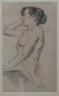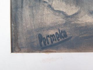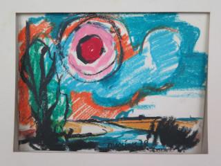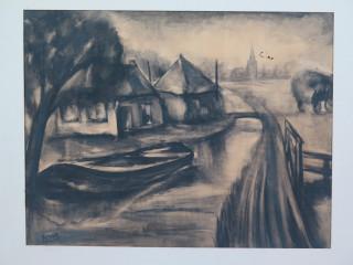 tekening, in lijst, 30 x 40 cm. en drie niet ingelijste tekeningen