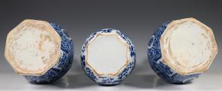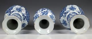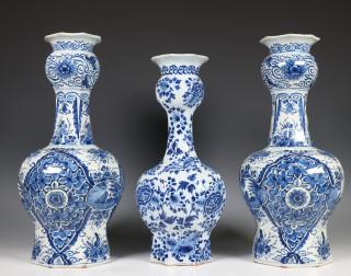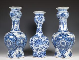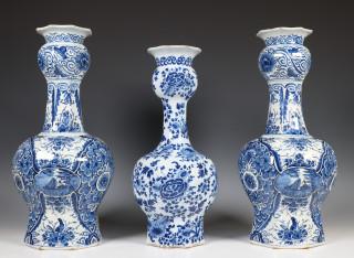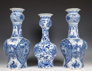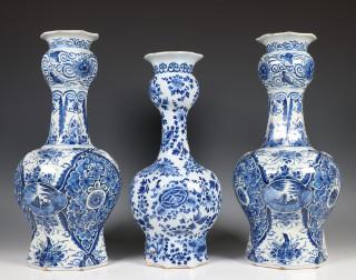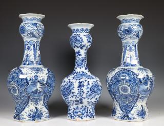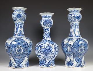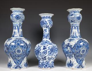 Delft, aardewerk knobbelvaas en paar knobbelvazen, 18e eeuw,