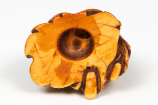 Japan, ivory netsuke, Meiji period, of a man with child and dog, provenance: Collection Cserno, Amsterdam