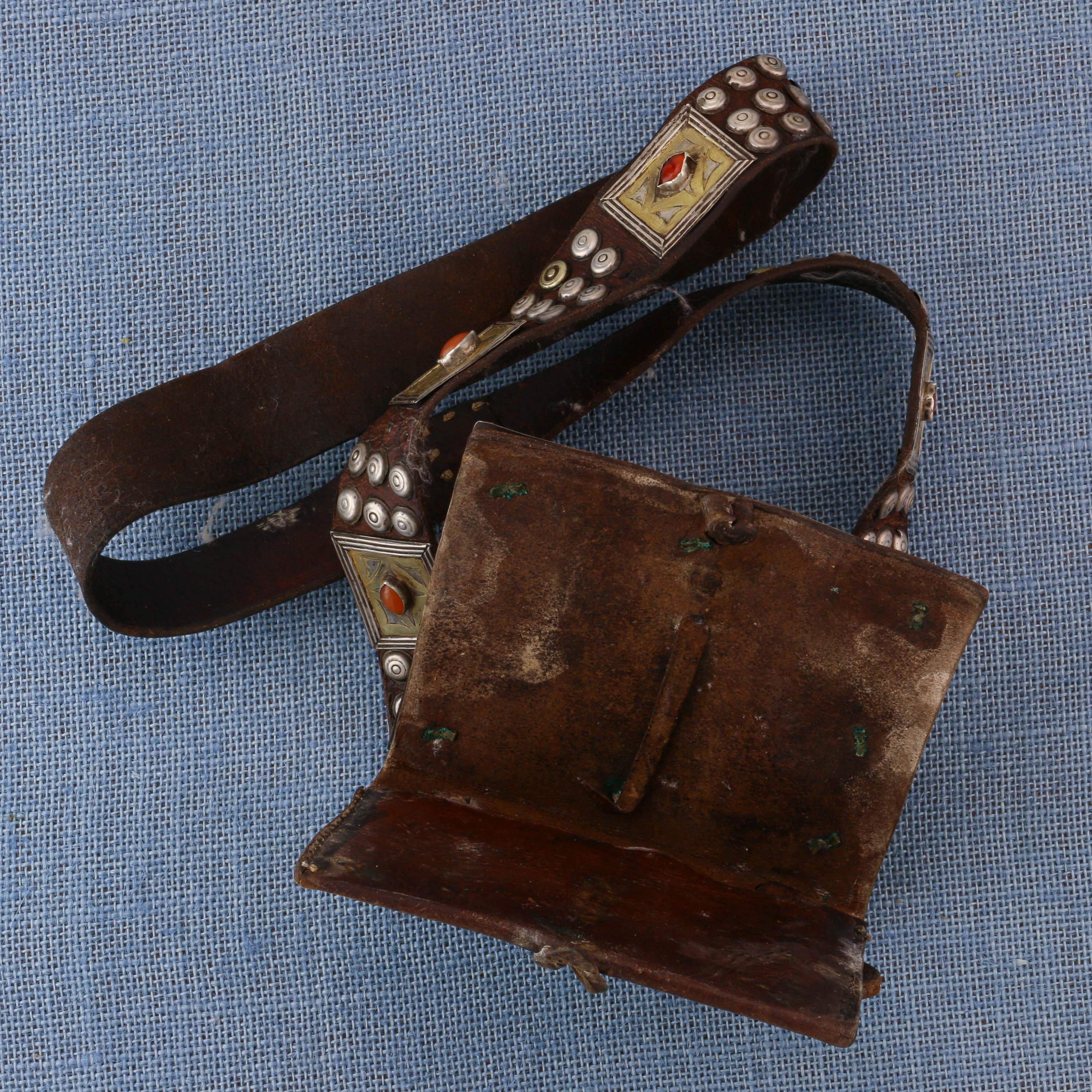 Turkmenistan, Tekke, "Kheykel", leather amulet bag with a silver front plate
