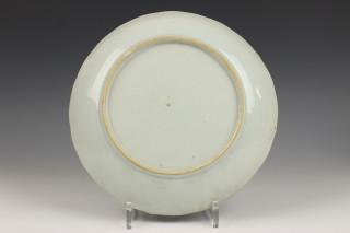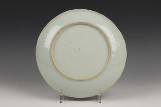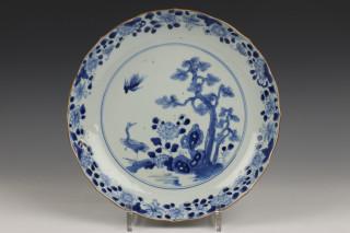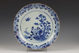 met decor van kraanvogels bij rotsformatie met naaldboom, de rand gecontourneerd (één met haarscheurtje 4 cm. en flintertje)