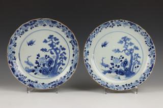 China, paar blauw-wit porseleinen borden, Qianlong,