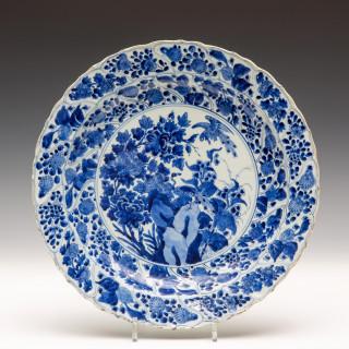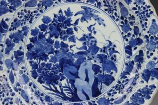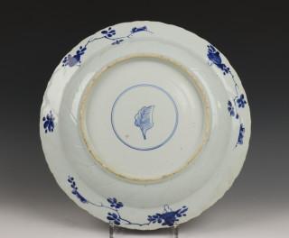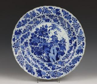 China, blauw-wit porseleinen schotel, Kangxi,