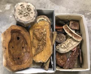 Grote collectie stenen en houten mallen en vormen voor het gieten in gips van schilderijlijsten- en ornamenten, 19e - 20e eeuw,
