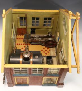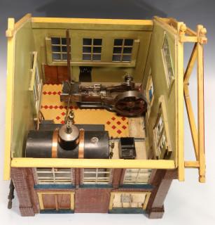 Houten maquette van een ketelhuis met stoommachine, ca. 1910,