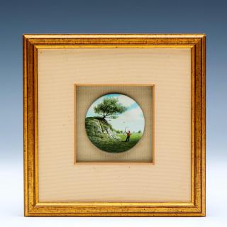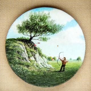 paneel, gesign. m.o., 1987, herkomst: Galerie Mokum, Amsterdam, diam. 4,7 cm.