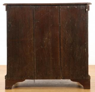 met gecontourneerd blad (besch.). In het orgelgebogen front vier laden, waarop messing beslag (losse onderdelen in zakje, incompleet)