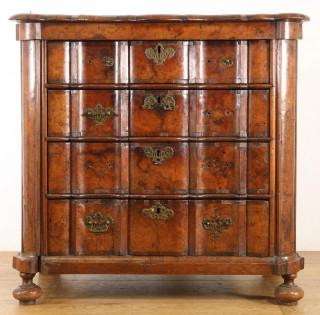 Noten-, notenwortelhouten commode, 18e eeuw,