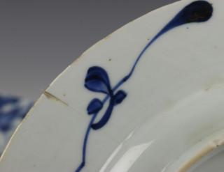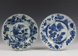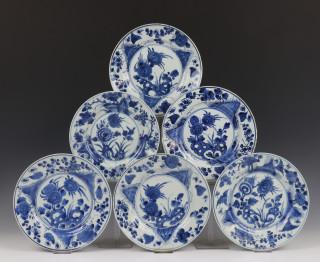 China, serie van acht blauw-wit porseleinen borden, Kangxi,