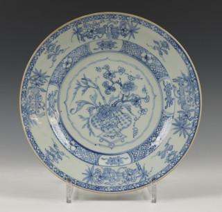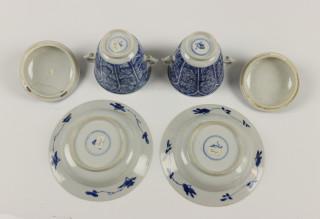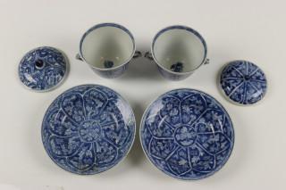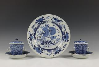 China, paar blauw-wit porseleinen dekselkop en schotels, KAngxi en twee borden, 18e eeuw