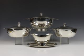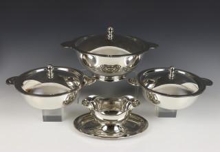 Christofle, 3 pleet dekschalen en 2 sauskommen.