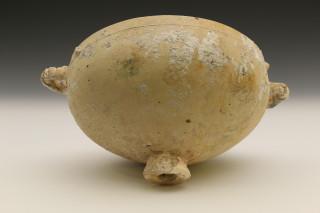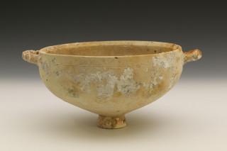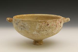 South Italy, a large antique terracotta dish with two ears and on a stand, with sea groth, ca. 1st century.