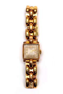14krt. Rosé en geelgouden damespolshorloge, opwind , jaren '40/50