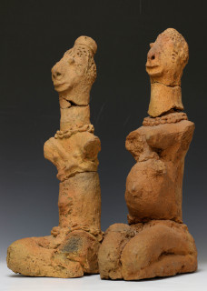 Mali, Bankoni, two fractured terracotta seated figures.