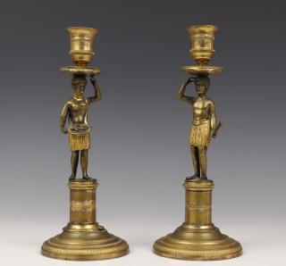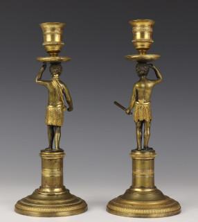 Frankrijk, stel éénlichts kandelaars met figuren van Moren, 19e eeuw,