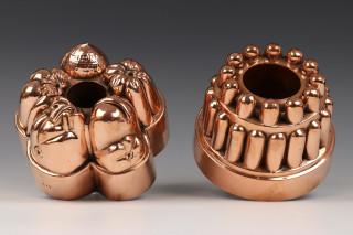 Twee rood koperen bakvormen, 19e eeuw,