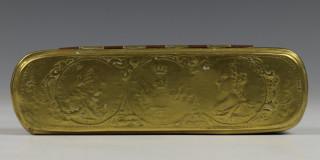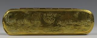 Duitsland, Iserlohner geel- en rood koperen tabaksdoos, 18e eeuw,