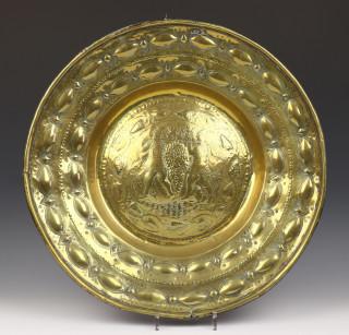 Duitsland, geel koperen gedreven offerandeschotel, 17e eeuw,