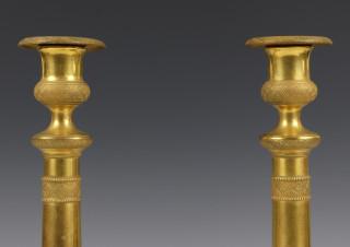 Frankrijk, paar vuurverguld bronzen kandelaars, Louis Philippe,