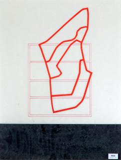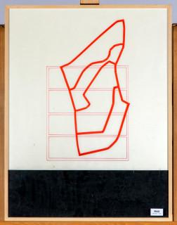 collage en inkt, op achterzijde lijst gesign., 1992, 65 x 48 cm.