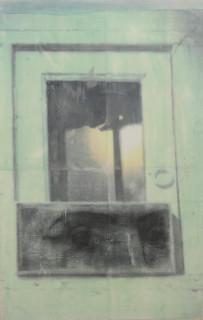 fotoprint en acryl op doek, verso etiket met naam, 85 x 55 cm.