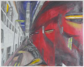 gemengde techniek op papier, gesign. l.o., 1994, 40 x 50 cm.