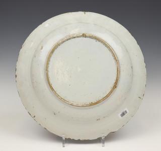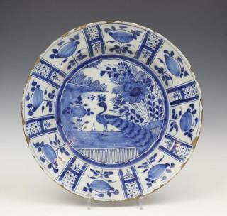 Delft, blauw witte aardewerk schotel, 18e eeuw en twee dekselvazen,