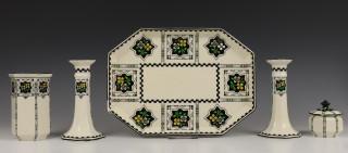 Couldon, set van vijf stuks aardewerk, Art Deco