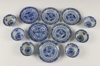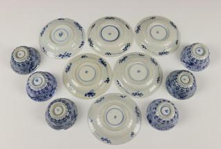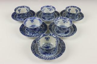 China, serie van zes blauw-wit porseleinen kop en schotels, 19e eeuw,
