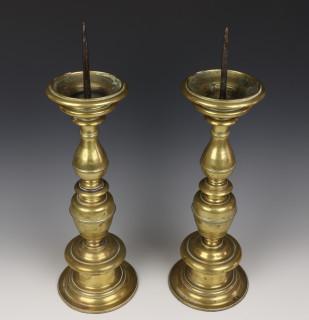 Italië, een paar bronzen penkandelaars, 16e eeuw,