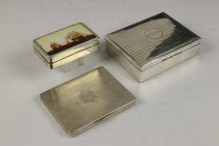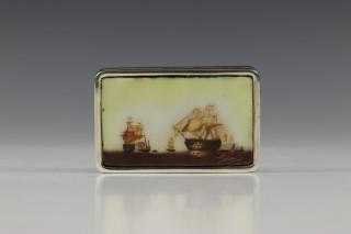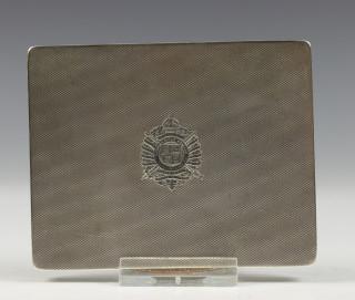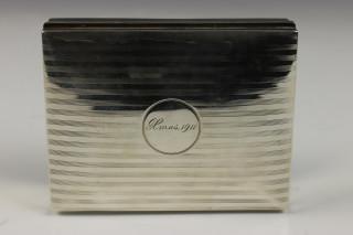 Rechthoekige doos met lijversiering, Birmingham 1911. Geguillocheerde sigaretten etui met vergulde binnenzijde mt. F.G. (niet geïdentificeerd ) Londen 1934. Snuifdoosje met geëmailleerde deksel met voorstelling van schepen met signering, geen keuren aangetroffen, 2e gehalte.