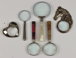 Zes verschillende vergrootglazen,