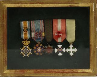 Officier in de Orde van Oranje Nassau, de Pius Orde, Ridder in Orde van de kroon (Italië), Orde van Sint Mauritius en Sint Lazarus (Italië) en één andere. Gelijst. Herkomst: Collectie W. Dreesman