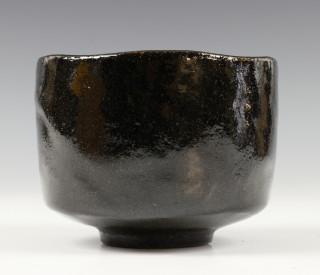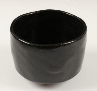 Japan, zwarte Raku keramiek theekom (chawan), gesigneerd, 20e eeuw,