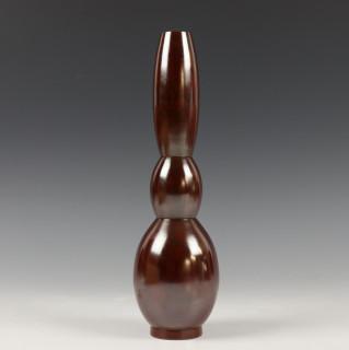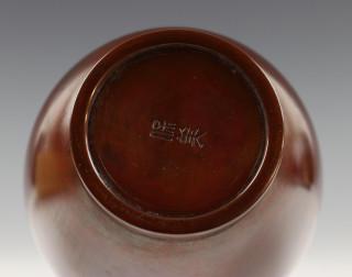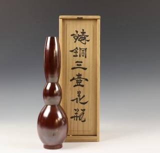 Japan brown-patinated bronze vase, signed Nakajima Yasumi II (1950-1986), with original wood box