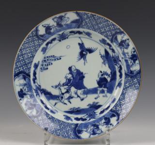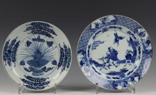 China, twee blauw- witte porseleinen borden, 18e eeuw,