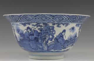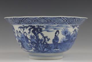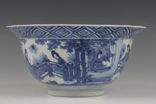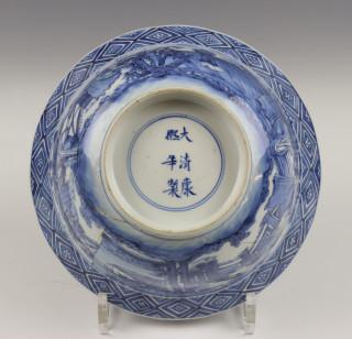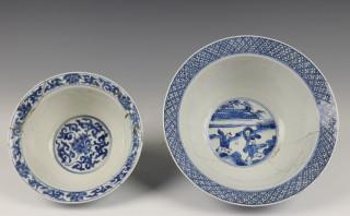 China, twee blauw-witte porseleinen kommen, Kangxi,