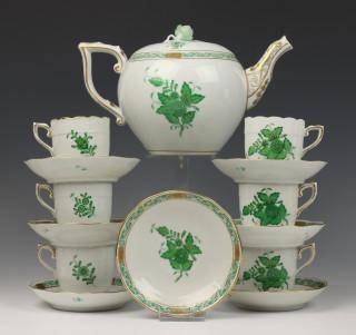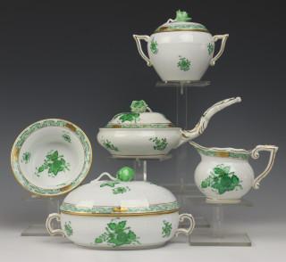 Hongarije, Herend, porseinen servies gedeelte, decor Apony Green,