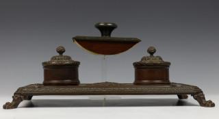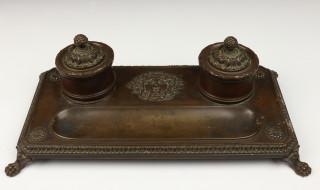 Gebronsd metalen inktstel met relief decoratie van Medusa, ca. 1900,