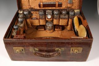 Engeland, uitgebreide reisnecessaire, Londen 1900 en later, geheel in krokodillen leren koffer Manchester Finnigan ca. 1910,
