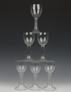 Frankrijk, set van zes deels gesatineerde waterglazen, model 'chêne', ontwerp Lalique, 1950,