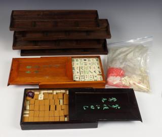 China, twee kistjes met mah-yong spellen met toebehoren en fiches