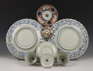 Japan, paar Imari plooischotels en paar dekselkop en schotels, vroeg Meiji periode