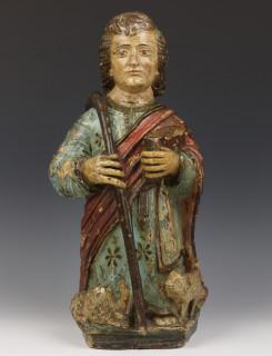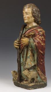 Spanje, polychroom beschilderd stenen sculptuur, Heilige St. Jan, 17e eeuw.