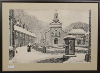 Vier diverse gravures, 17e t/m 19e eeuw en Jan Strube,litho