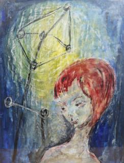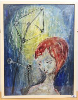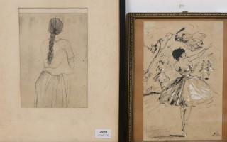 Compositie met vrouw bij lantaarn. Hierbij tekening ballerina, en twee diverse etsen