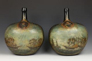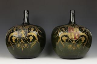 Stel grote groen glazen wijnflessen, ca. 1800,